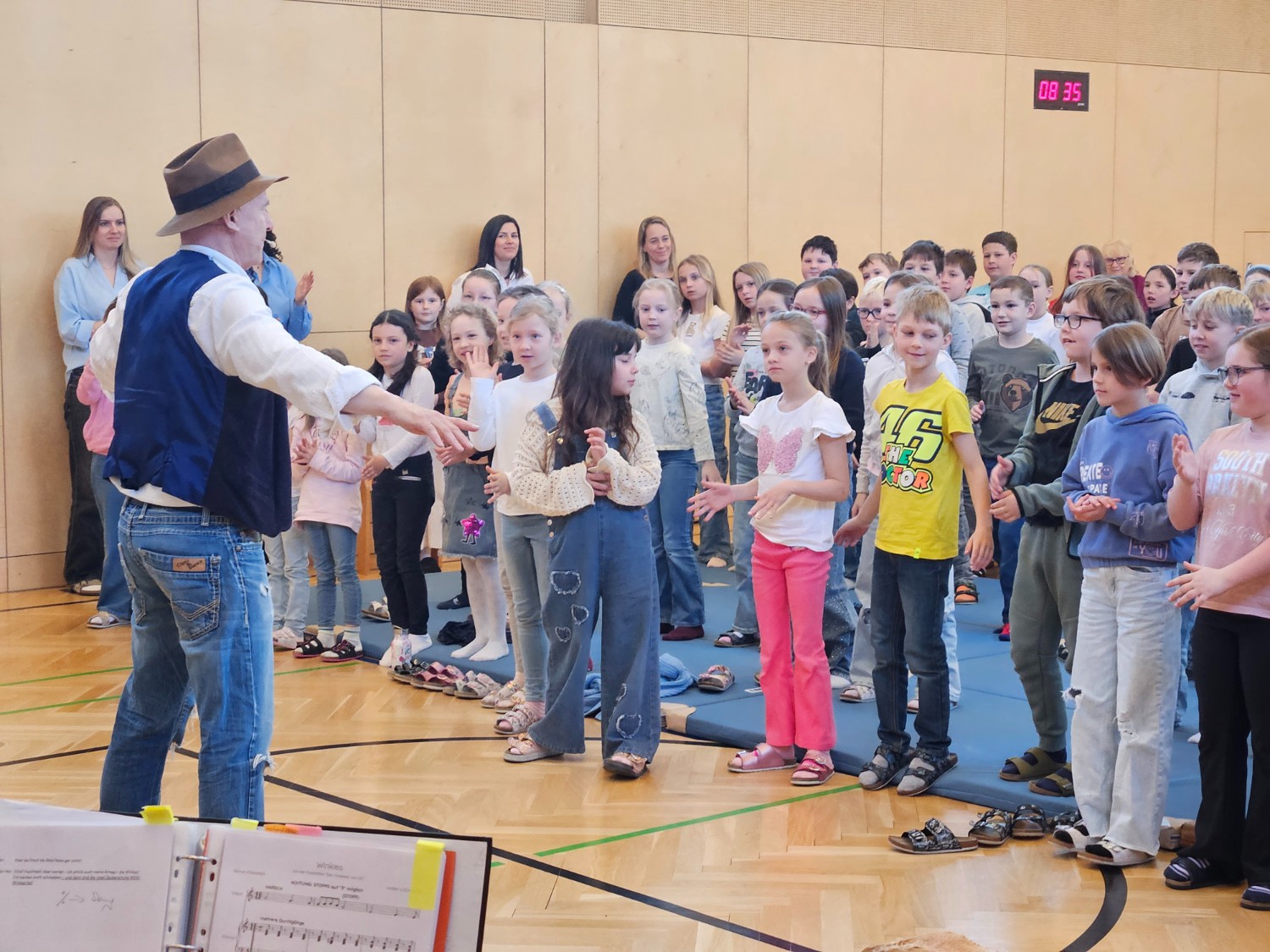 Am 08. April 2026 durften die Schülerinnen und Schüler der Volksschule Weißkirchen ein ganz besonderes kulturelles Highlight erleben: Gernot Kranner brachte das bekannte Musical „Der Zauberer von Oz“ direkt an unsere Schule.