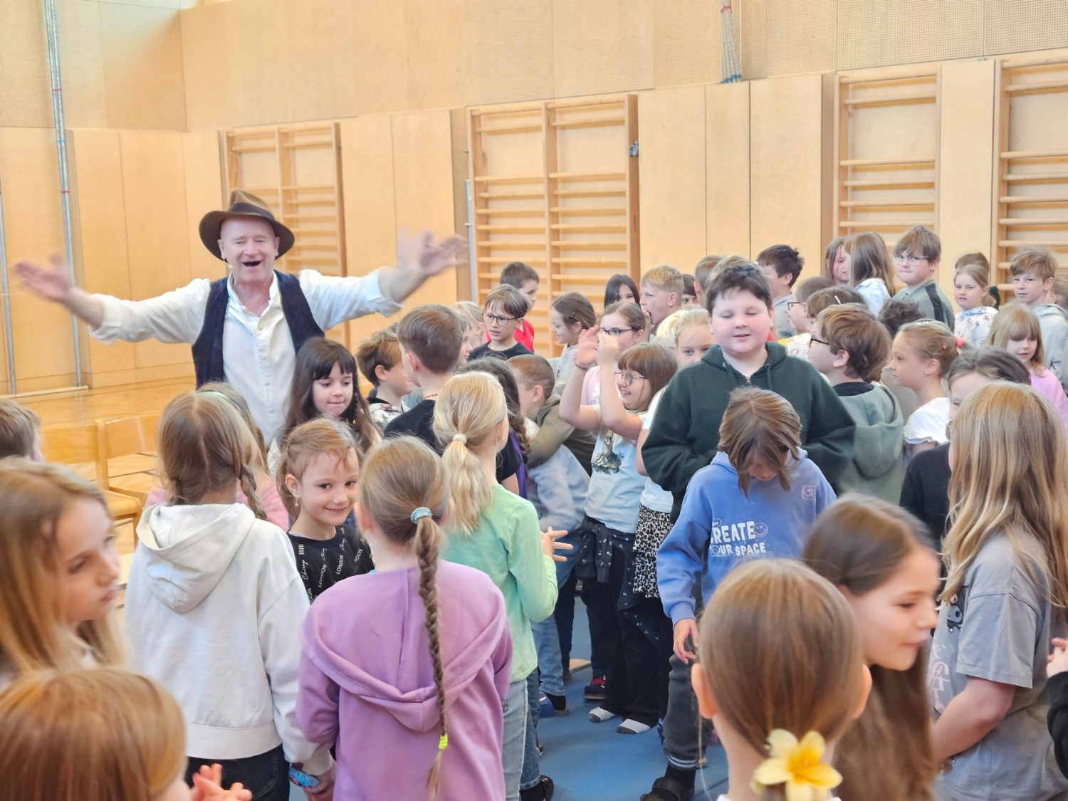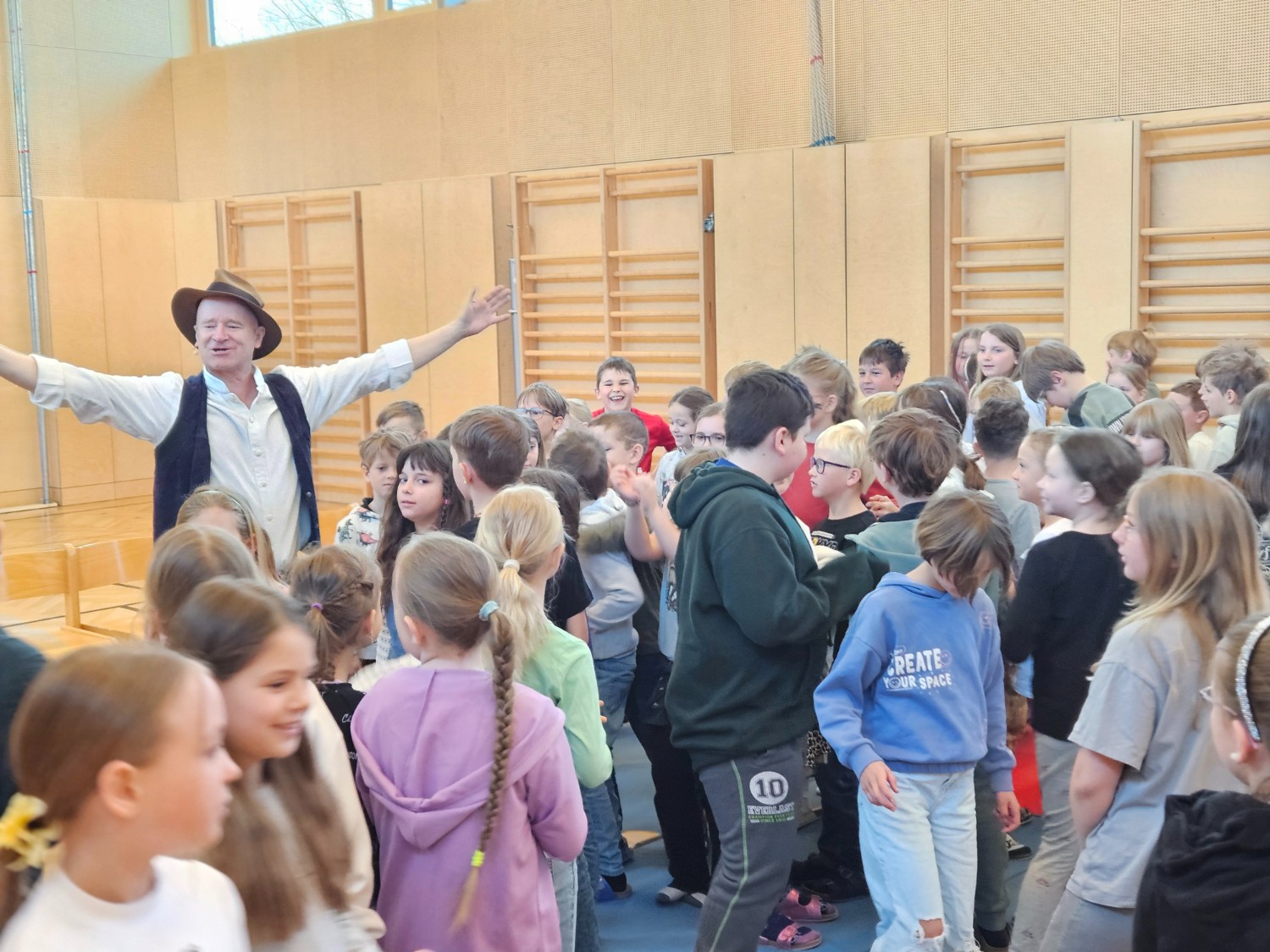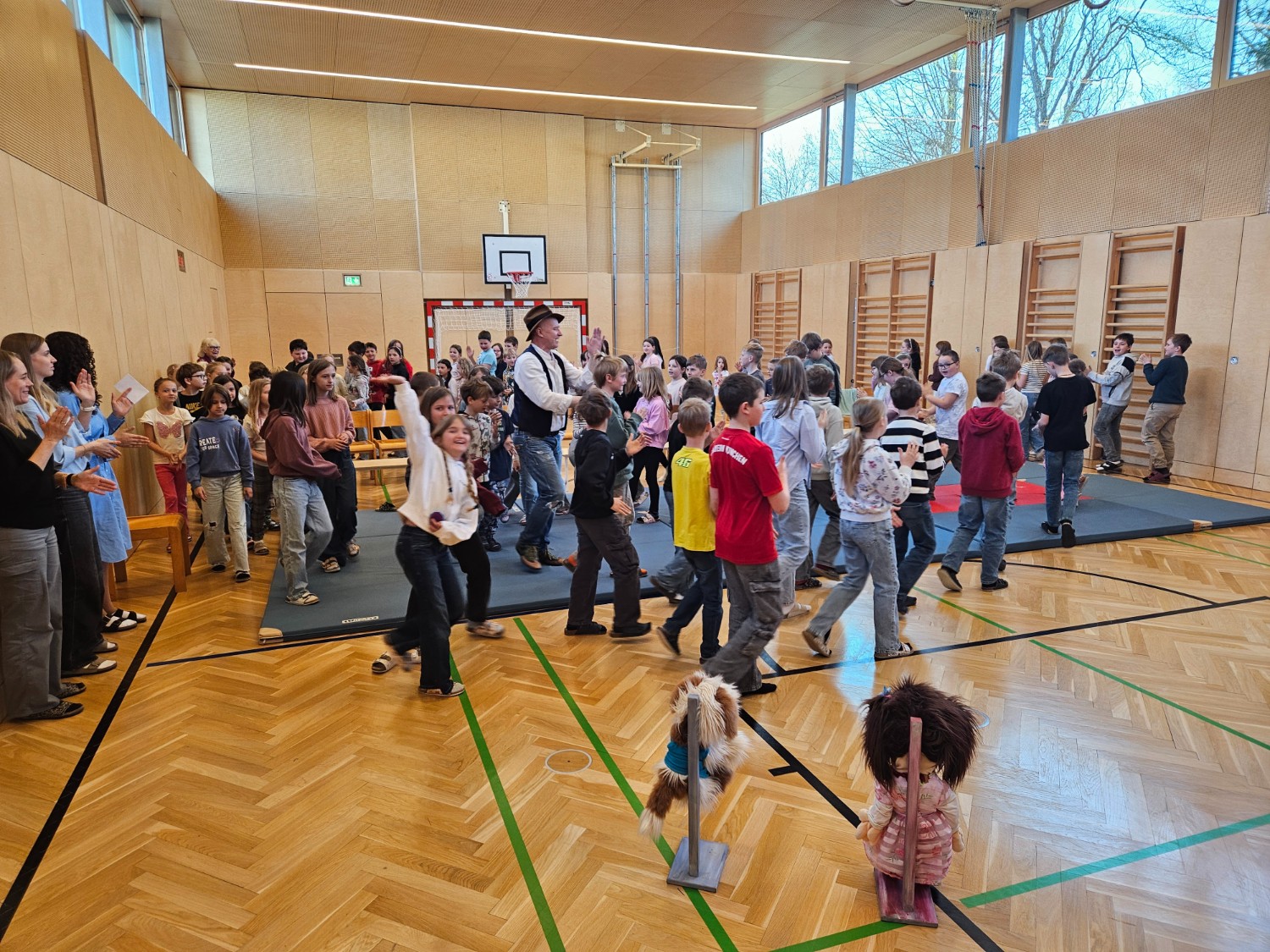 Die Aufführung bot nicht nur beste Unterhaltung, sondern vermittelte auch wichtige Botschaften über Freundschaft, Mut und Zusammenhalt. Die Schülerinnen und Schüler waren mit großer Aufmerksamkeit und Begeisterung dabei und spendeten am Ende tosenden Applaus.